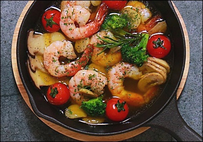 | 해산물 감바스 | 관자, 오징어 활용 |