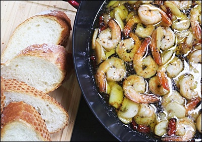 감바스를 활용한 크로스오버 요리도 있어요. 감바스를 치아바타 빵에 얹고 체다치즈를 올려 토치로 살짝 구우면 와인 안주로 완벽한 핑거푸드가 돼요. 파티나 손님 초대용 요리로도 손색 없죠!✨