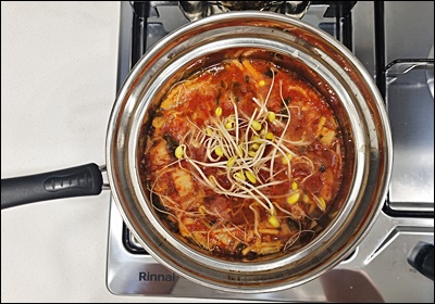 4. 콩나물을 넣고 뚜껑 닫은 채로 4~5분 더 끓여요. (뚜껑 열면 비린내나요!)