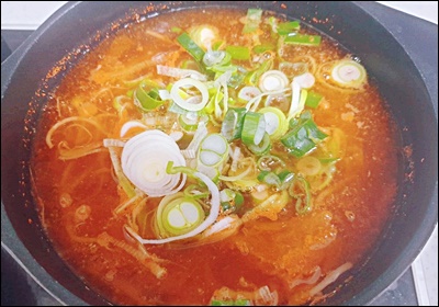 국물이 살짝 얼큰하고 맑은 편이라 라면사리와 찰떡이에요. 딱 3분만 끓이면 면이 쫄깃하고 국물은 배가 되죠! 고춧가루 한 꼬집 추가하면 더 깊어진 국물맛 완성!