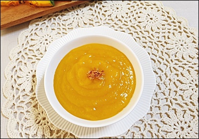 A7. 간은 전혀 하지 말고, 단호박과 쌀만 사용해서 부드럽게 곱게 갈아주세요. 걸쭉하지 않게 묽게 만들어 아기가 먹기 쉽게 해주는 것이 좋아요.