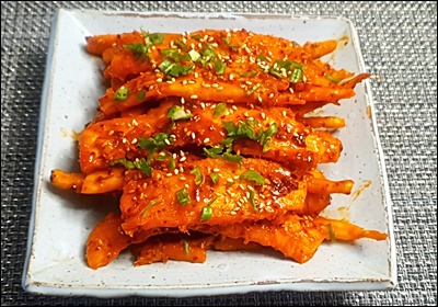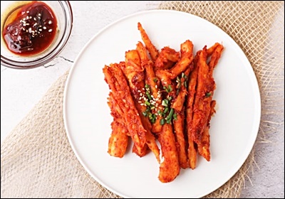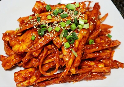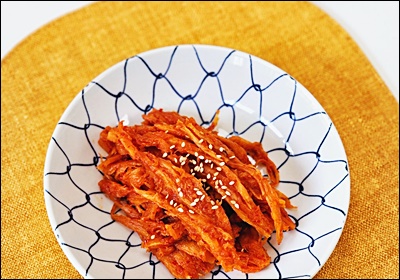 A4. 고추장과 고춧가루 양을 줄이면 아이들도 먹을 수 있어요. 간장 베이스의 순한 양념으로 무치면 아삭한 식감에 아이들도 좋아한답니다. 😊