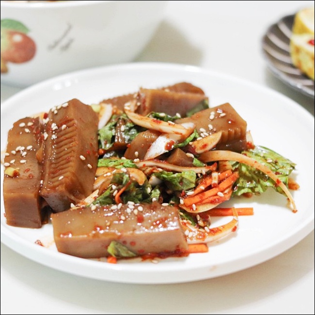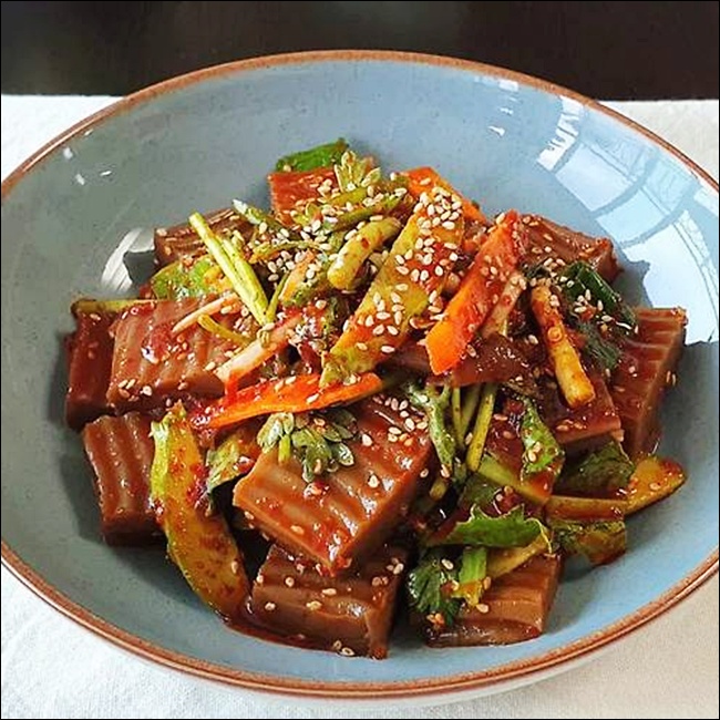 도토리묵은 고소하고 부드러운 식감 덕분에 한국인 밥상에서 자주 등장하는 별미 반찬이에요. 그 자체로는 담백한 맛이 강하기 때문에 양념장의 맛이 전체를 좌우한다고 해도 과언이 아니죠!