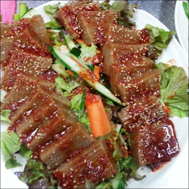 도토리묵은 도토리 가루를 이용해 만든 전통적인 한식이에요. 부드러운 젤리 같은 식감에 고소함이 가득하죠. 하지만 도토리묵 자체는 간이 거의 없어서 양념장이 정말 중요해요. 양념장이 맛을 좌우한다고 해도 과언이 아니에요.