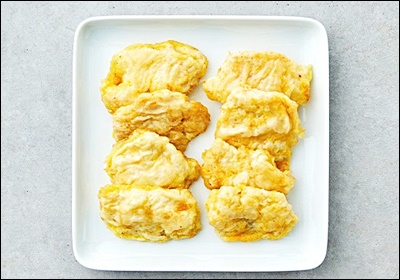 A6. 후추, 청주 같은 향신료를 줄이고 채소를 함께 섞어 부치면 순하고 맛있는 아이 반찬이 돼요. 부드럽게 조리해 주세요.