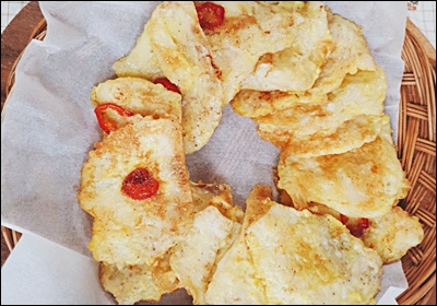 첫 번째 추천은 동태전 샌드 전이에요. 동태 살 사이에 깻잎, 치즈, 김치 등을 끼워서 전을 만드는 건데요, 단조로운 동태전에서 벗어나 새로운 맛의 조합을 느낄 수 있어요. 특히 깻잎을 넣으면 향긋하고 치즈는 고소함이 살아나요! 🧀