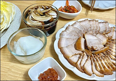 나의 느낌으로 말하자면, 수육은 밥 없이도 배부르게 먹을 수 있는 요리예요. 쌈과 반찬만 있어도 자연스럽게 술안주로도 되고, 한 끼 식사로도 완벽하거든요. 같이 먹는 반찬이 진짜 중요해요!