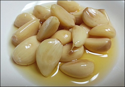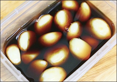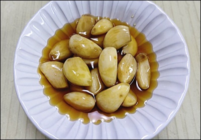 | 절임장 식혀서 붓기 | 마늘 익지 않도록 |