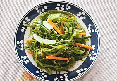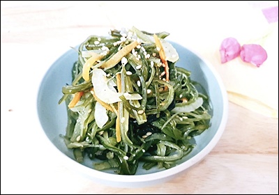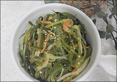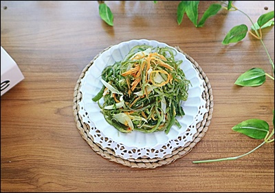 샐러드에 응용하는 방법도 있어요. 미역줄기를 살짝 데워서 오이, 당근, 양배추와 함께 초간장 드레싱을 뿌리면 해조류 샐러드로 재탄생해요. 입맛 없을 때 딱 좋은 상큼한 반찬이에요 🥗