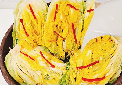 | 손질 | 배추 결 따라 손으로 찢기 |