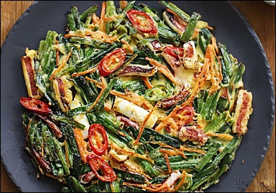 칼칼한 맛을 더해주는 청양고추 조림은 느끼함 잡아주는 역할을 톡톡히 해요. 매운맛 좋아하는 분들에게 특히 추천! 전이 물리지 않고 계속 들어가요 😄