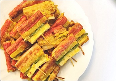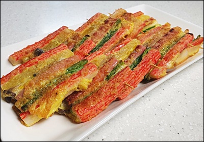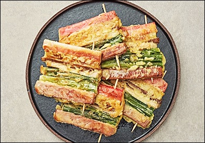 A7. 있어요! 꼬치 없이 겹겹이 재료를 겹쳐 팬에 굽거나, 말아서 지지는 방식도 많이 써요.