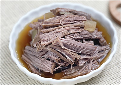 고기는 도톰하게 썰기보다는 한 입 크기로 삶은 후 찢는 스타일이 좋아요. 이렇게 하면 양념이 속까지 잘 배고, 먹을 때도 편리해요. 🧂