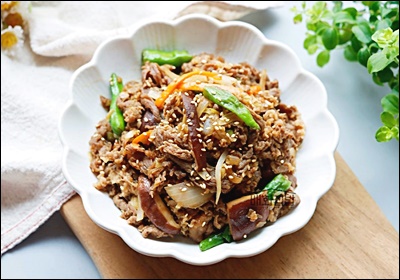 | 불고기 덮밥 | 한 그릇 완성 | 계란 프라이 추가 |