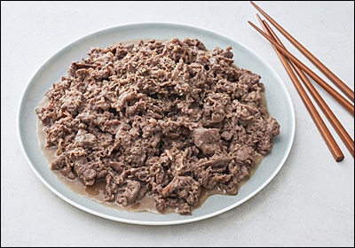 A1. 목심, 우둔살, 채끝 같은 부위가 좋아요. 지방이 적당히 섞여 있어야 식감이 부드럽고 양념도 잘 배여요.