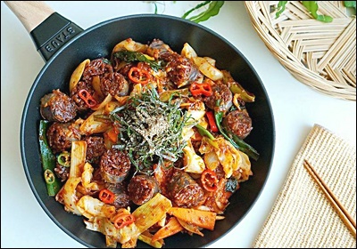 A7. 물론이에요! 양배추, 부추, 깻잎, 파 등 많이 넣을수록 맛이 풍성해져요. 단, 수분이 많아지니 센 불에 볶아주세요.