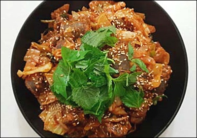 | 깻잎 | 향긋함 | 볶은 후 마무리로 올리기 |