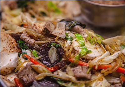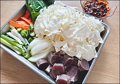 | 2 | 야채 (양배추, 양파 등) | 중불 |