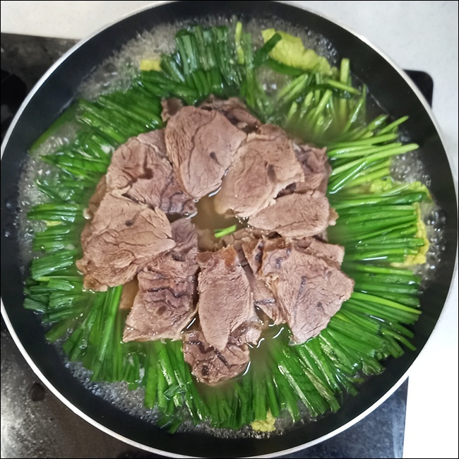 끓기 시작한 뒤 10분 정도는 뚜껑을 열고 잡내를 날려줘요. 이후 뚜껑을 덮고 50~60분 정도 푹 삶아요. 아롱사태 1kg 기준이에요. 중간에 젓가락을 찔러서 핏물이 안 나오면 잘 익은 거랍니다.