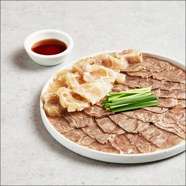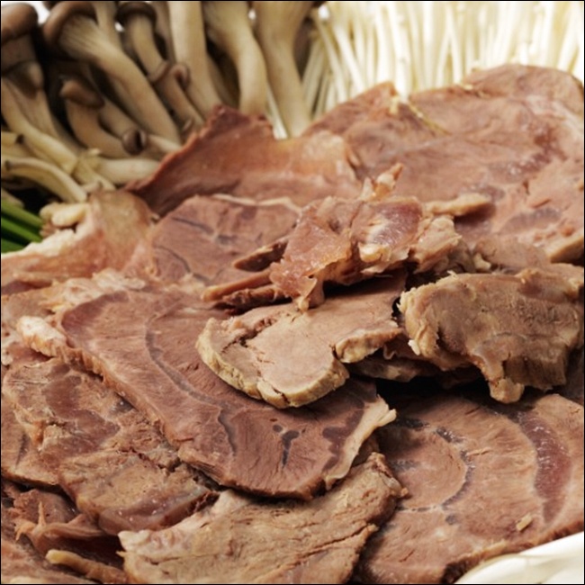 아롱사태는 소의 뒷다리 근처에 있는 근육 부위로, 육질이 단단하면서도 오래 삶으면 부드럽게 풀리는 특징이 있어요. 기름기가 적고 담백해서 수육용으로 아주 인기가 많죠. 식감도 탱글탱글하고, 결이 살아 있어서 썰었을 때 모양도 예뻐요.