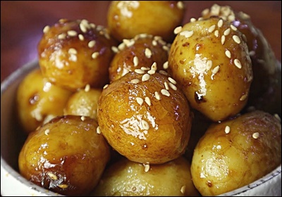 A8. 수미 품종의 단단한 감자가 가장 적당해요. 흐트러지지 않고 단맛도 좋아요.