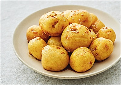 국내에서 흔히 볼 수 있는 알감자 종류로는 ‘수미’, ‘대서’, ‘추백’ 품종 등이 있어요. 이 중에서도 ‘수미’ 품종이 알감자조림에 가장 많이 사용돼요. 왜냐하면 삶았을 때 흐트러지지 않고 단단한 조직감을 유지해 주기 때문이에요.