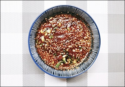 | 3. 통깨 추가 | 으깬 통깨 톡톡 | 식감 + 고소함 |