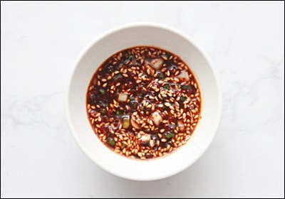 간장 2큰술, 다진 마늘 1작은술, 다진 파 1큰술, 참기름 1작은술을 순서대로 넣고 잘 섞어주세요. 고춧가루를 추가한다면 이때 함께 섞어요. 고춧가루는 한 번에 넣지 말고 조금씩 간을 보면서 넣는 게 좋아요. 🌶️