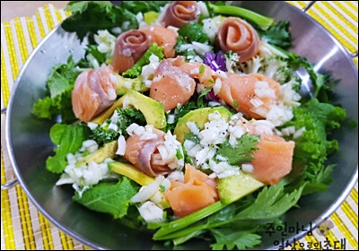 A1. 가능해요. 염도가 있으니 드레싱 소금은 줄이고 레몬을 강조해요. 발사믹·유자 드레싱이 궁합이 좋아요.