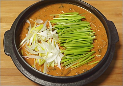 4️⃣ 양념 및 채소 추가 국물이 우러났으면 들깨가루, 된장 또는 고추장, 국간장, 대파, 청양고추 등을 넣고 10분 정도 더 끓여요. 향이 확 살아나는 시점이에요 😋