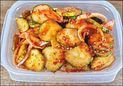 A3. 양념이 강하다고 보관이 잘 되는 건 아니에요. 양념이 진할수록 오이에서 더 많은 물이 나올 수 있으니 적당한 간이 중요해요.