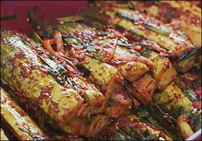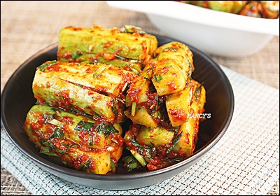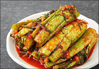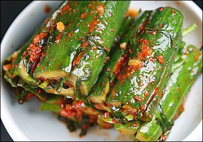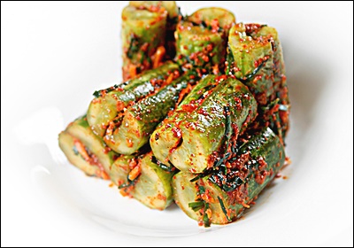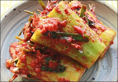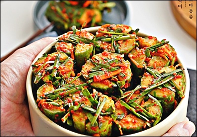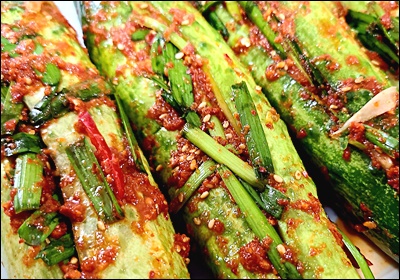 | 조리법 | 오이 갈라 양념 채움 | 양념이 골고루 스며듦 |