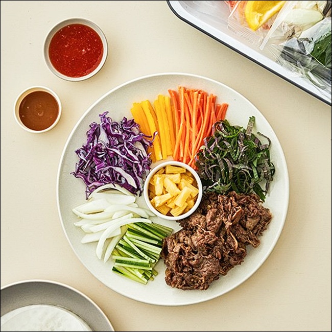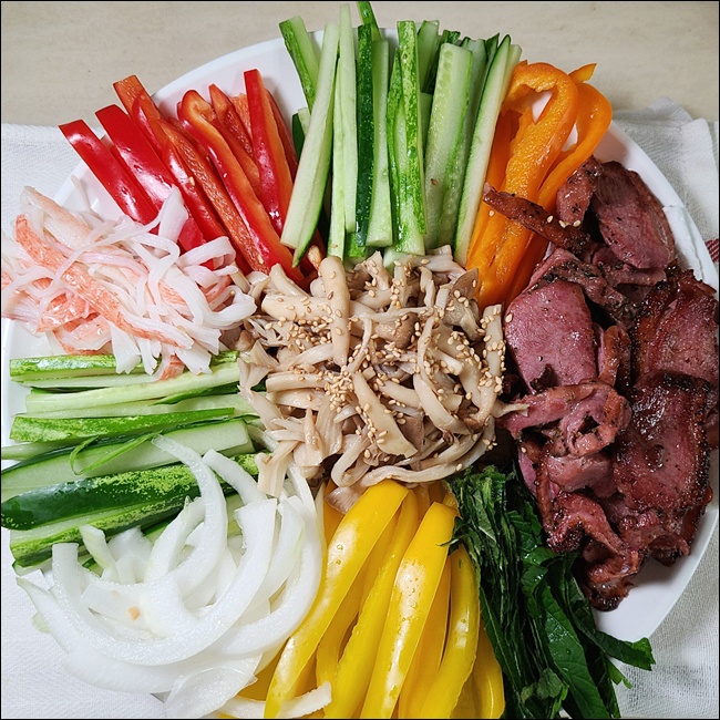 채소는 신선도와 색감이 핵심이에요. 오이, 당근, 적양배추, 깻잎, 상추, 새싹채소, 파프리카 등은 색상도 예쁘고 식감도 좋아서 월남쌈에 자주 사용돼요. 너무 굵게 썰면 말 때 불편하니까 채칼이나 슬라이서로 얇게 썰어주는 게 포인트랍니다. 냉장 보관 시에는 젖은 키친타월로 감싸주면 더 오래 신선하게 유지돼요.