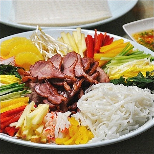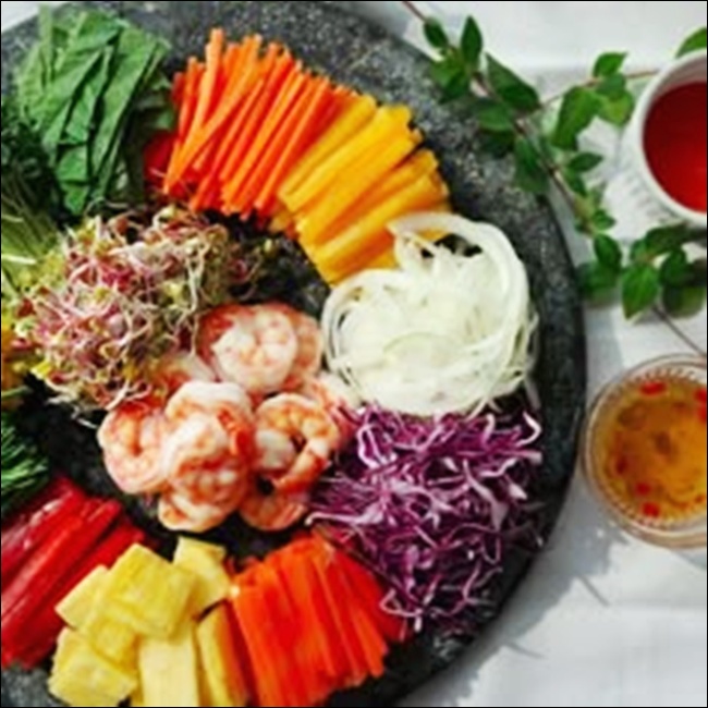 예전에는 주로 농촌 지역에서 노동을 마친 뒤 간단하게 먹는 식사였어요. 신선한 채소와 삶은 돼지고기 또는 새우를 넣어 만들었고, 함께 곁들인 소스가 맛을 더해줬죠. 날씨가 더운 베트남에서는 불을 오래 사용하는 요리보다는 이런 생식 요리가 인기가 많았답니다.