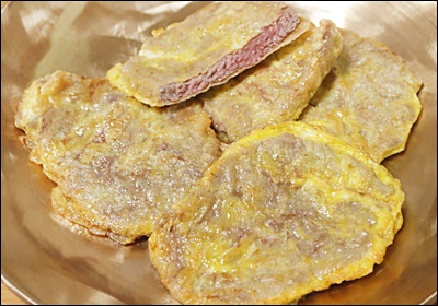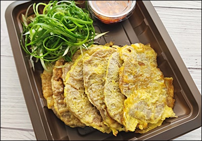 | 3 | 계란물 입히기 | 계란물에 푹 담근 뒤 바로 팬에 |