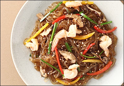 기름기 없이 잡채를 살짝 데우고 샐러드 채소와 곁들이면 한식풍 웜샐러드가 돼요. 참깨 드레싱과 궁합이 정말 좋아요. 건강한 식단에도 굿! 🥗