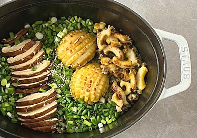 | 2. 볶기 | 전복+쌀+참기름 | 고소함↑ |