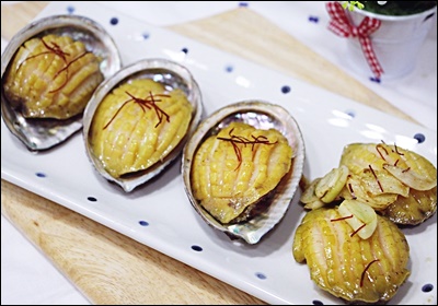 A8. 껍질에 윤기가 있고, 살이 단단하며, 만졌을 때 반응하는 전복이 싱싱해요. 내장이 꽉 찬 것이 맛도 좋답니다.