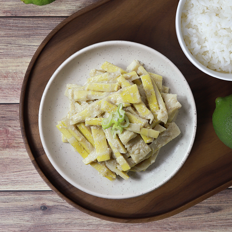 또 하나의 인기 요리는 죽순 그린커리예요. 태국 그린커리 소스에 닭고기와 죽순을 넣고 끓이면 크리미하면서도 매콤한 맛이 어우러진 요리가 돼요. 코코넛밀크와 죽순은 생각보다 잘 어울려요. 이건 꼭 한번 시도해보면 좋아요! 🥥