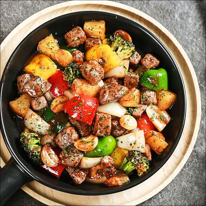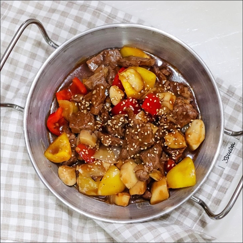 찹스테이크는 한 입 크기로 썬 소고기를 야채와 함께 볶아낸 요리예요. 부담 없이 먹기 좋아서 집밥 메뉴는 물론이고, 손님 초대 요리로도 인기가 많죠. 소고기의 육즙과 달콤 짭조름한 소스가 어우러져 정말 감칠맛 나요 😋