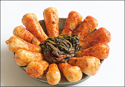 총각김치는 ‘알타리무’라는 작은 무를 통째로 사용해 만든 김치예요. ‘총각’이라는 이름은 이 무가 마치 짧은 총각들의 다리처럼 생겼다고 해서 붙여졌다는 설이 있어요. 귀엽고 재밌는 유래죠? 😄