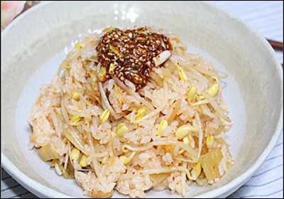 밥이 완성되면 콩나물과 밥을 잘 섞어 그릇에 담고, 깨소금이나 김가루를 고명으로 올리면 식감과 맛이 한층 업그레이드돼요. 양념장과 함께 비벼 먹으면 한 끼 든든하고 건강한 식사가 완성됩니다!