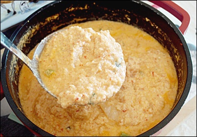| 4 | 콩비지 넣고 약불 | 20분 이상 저어가며 끓이기 |