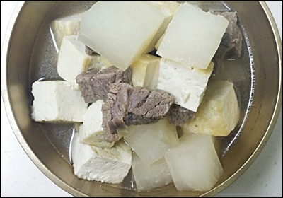 | 두부 | 부침두부 | 나중에 넣고 살살 저어야 모양 유지 |