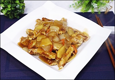 | 과일 탕수육 | 상큼달콤한 풍미 | 파인애플, 사과즙, 배즙 |
