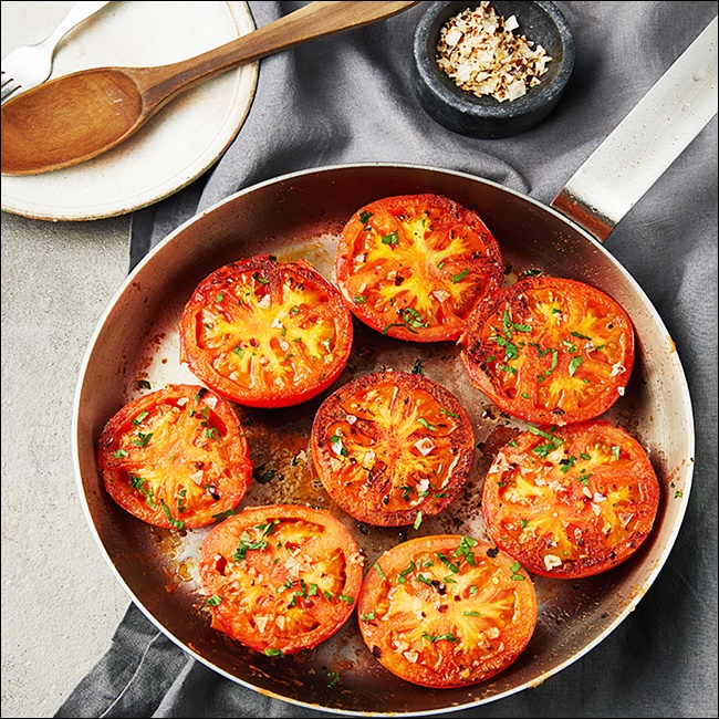 두 번째는 토마토의 숙성도에 따라 요리에 활용하는 방법이에요. 잘 익은 토마토는 샐러드나 주스로, 덜 익은 토마토는 스튜나 볶음 요리에 쓰면 좋아요. 덜 익은 토마토는 조리 과정에서 단맛과 감칠맛이 깊어져 더 맛있어지거든요. 그래서 토마토는 용도에 따라 골라 쓰는 게 중요해요.