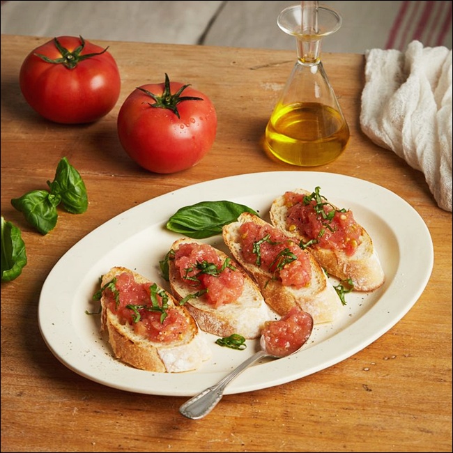 빵과도 잘 어울려요. 토마토를 슬라이스해 바게트에 올리고, 치즈와 함께 오븐에 살짝 구우면 간단한 브루스케타가 완성돼요. 와인 안주로도 잘 어울리고, 간식으로도 훌륭해요. 남은 토마토가 있다면 이렇게 간단하게 소진하는 것도 좋은 방법이에요.